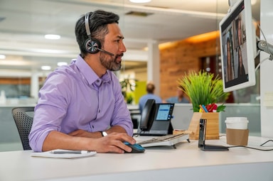 HP Poly Voyager Focus 2 USB-A -kuulokkeiden ja niiden mukana tulevan lataustelineen ansiosta kuulet kollegasi selkeästi. Kuulokkeet tarjoavat hybridiaktiivisen melunvaimennuksen, Bluetooth-yhteyden ja USB-adapteriliitännän sekä kestävän akun.Tutustu ominaisuuksiin