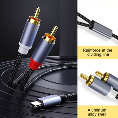 USB-C - 2x RCA-äänisovitin, joka varmistaa stereoäänen siirron ilman viivettä tai signaalihäviötä. Liitä matkapuhelimesi, tablettisi tai MP3-soittimesi helposti kaiuttimeen, stereojärjestelmään tai muuhun RCA-yhteensopivaan laitteeseen tällä sovitinkaapelilla.