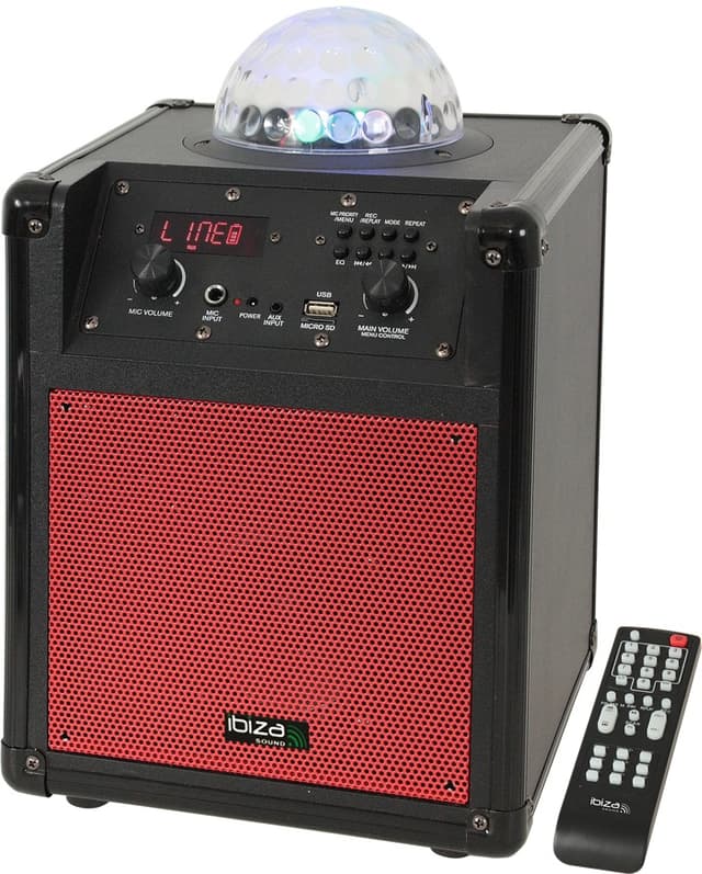 USB, micro SD & Bluetooth inputs. 1x MIC input with priority function. 1x AUX input. FM tuner with pre-set stations. LCD display. REC function. Recessed handle on the rear panel & shoulder strap. Remote control & ...