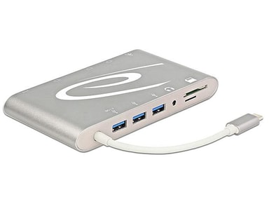 Tämä Delockin telakointiasema voidaan liittää tietokoneeseen, jossa on USB-C ™ Alt -tila tai Thunderbolt 3 -portti, ja se tarjoaa erilaisia käyttöliittymiä. Kahta näyttöä voidaan käyttää samanaikaisesti mini Displayport- ja HDMI -ulostulojen kanssa tai yhtä näyttöä VGA -lähdöllä. Kolme sisäänrakennettua A-tyypin USB-porttia mahdollistaa oheislaitteiden ja liitäntöjen käyttämisen kuulokkeissa ja gigabitiverkossa sekä SD / micro SD -kortinlukijan. USB-C-virtalähteellä kannettavat tietokoneet, kuten Macbook tai Chromebook ladataan käytön aikana.