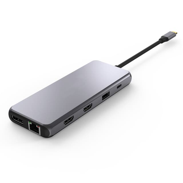 NÖRDIC 1–13 USB C -telakointiasema, kolme näyttöä, 4K 60 Hz, RJ45 Giga Ethernet, PD 87 W 5x USB A, kortinlukija ja ääniTutustu ominaisuuksiin