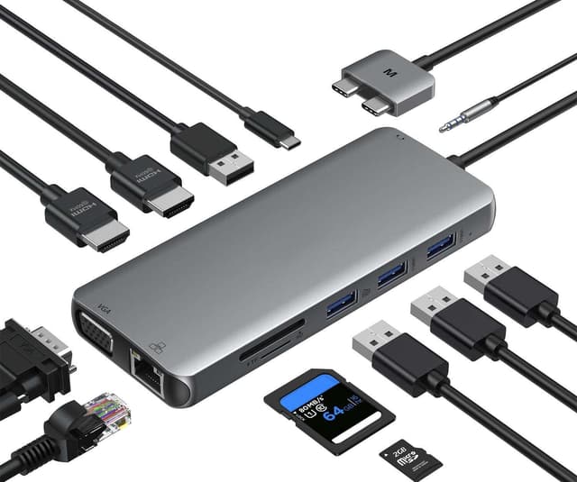 Suunniteltu MacBook Prolle / Airille 2018-2020. DOCK-144:n avulla laajennat työmahdollisuuksiasi ja annat itsellesi vakaamman suorituskyvyn. Ei tarvita ohjaimia tai ohjelmistoja, vain kytke ja käytä. Muunna Macbookin USB-portti 12 portiksi: 2xHDMI 4K 60 ja 30 Hz HDMI, VGA 1080p, Giga Ethernet, 4xUSB, SD/TF-kortinlukija, 87 W PD ja 3,5 mm audio. 2x USB 3.1 -portin synkronointi ja tiedostojen siirto 5Gbps ja 2x USB 2.0 480Mbps mahdollistaa näppäimistön tai hiiren liittämisen viivytyksettä. 1000 Mbps:n Ethernet-portti tarjoaa vakaan ja nopean yhteyden langalliseen verkkoon. Käytä HDMI-porttia siirtyäksesi peilitilaan Mac OS:ssä tai laajennetussa tilassa ja siirrä suoraa 4K Ultra HD @ 60Hz tai Full HD 4K @ 60 Hz -videota 3D-efektillä kannettavan tietokoneen näytöltä näyttöön, projektoriin, HDTV:hen jne. VGA-portti tukee jopa 1080p:tä @ 60 Hz. PD-latausliittimen avulla voit ladata nopeasti ja helposti MacBookisi tai muita USB-C-porteilla varustettuja laitteita (tiedonsiirtoa ei tueta) ja samalla tarjota lisävirtaa kiintolevyllesi, DVD-ajurillesi ja USB-portteihin liitetyille lisälaitteille. aika. 3,5 mm:n ääni-/mikrofoniportti takaa helpon kuulokeliitännän fantastiseen musiikkikokemukseen. SDXC- ja Micro SD -korttipaikat tarjoavat ylivertaisen monipuolisuuden ja nopeat siirtonopeudet (SD / TF voidaan käyttää samanaikaisesti). Yhteensopiva Mac OS:n kanssa, nopeus jopa 104 Mbps kortin laadusta riippuen.