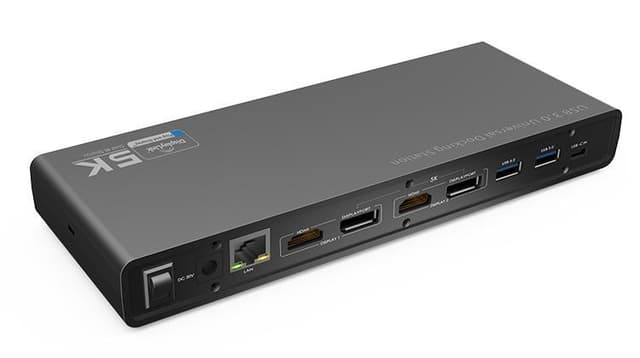 Tämä universaali telakointiasema voidaan helposti liittää useimpiin laitteisiin, jotka käyttävät tavallista A- tai C-tyypin liitintä. Liitä 5K yksimuotoinen näyttö tai enintään kaksi kaksitilaista 4K-näyttöä.