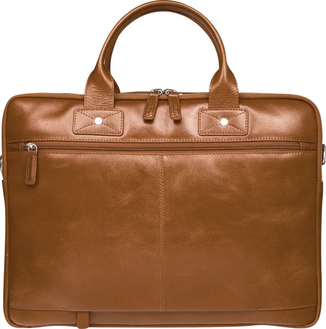Tyylikäs dbramante1928 Kronborg -laukku sopii hyvin kannettavalle tietokoneelle tai MacBookille. Laadukkaasta pintanahasta valmistetussa laukussa on kestävät metalliset vetoketjut ja sovikeosat. Laukussa on myös irrotettava olkahihna ja pehmustetut kantokahvat, kaksi ulkoista vuorattua taskua vetoketjuilla ja kiinnitystasku matkalaukun vetokahvalle. Laukun sisäpuolella on yksi pehmustettu osio 16-tuumaiselle kannettavalle tai MacBookille ja toinen tasku, mihin mahtuu esimerkiksi asiakirjoja. Lisäksi laukussa on useita pienempiä taskuja puhelimelle, kirjoitusvälineille ja muille tarvikkeille.