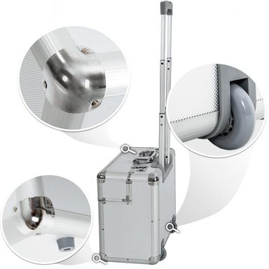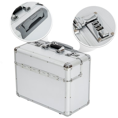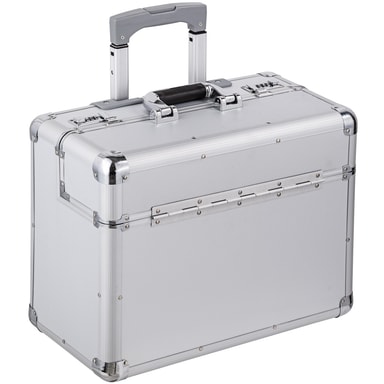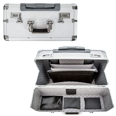 Tällä tectaken Pilot-kotelon alumiinisella matkakärryllä hallitset jokaisen liiketapaamisen ja teet siitä suuren. Asiakirjasi ovat täydellisesti suojattu kahdella yhdistelmälukolla, ja vaunussa on enemmän kuin tarpeeksi tilaa kaikille tiedostoillesi ja tarpeillesi. Teleskooppikahva voidaan lukita kolmeen eri asentoon, jotta se voidaan säätää täydellisesti korkeutesi mukaan. Kahden pehmeän pyörän ansiosta vaunua on helppo liikuttaa ja ohjata. Vaunussa on kannettavan tietokoneen lokero sekä kännykkätasku ja käyntikorttikotelo. Tämä on myös täydellinen koko lentomatkatavaraksi. Valmistaudu työmatkaasi tällä tectaken matkakärryllä.