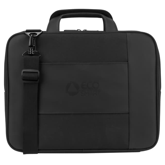 Käytännöllinen Targus Balance EcoSmart -laukku sopii erinomaisesti kannettavan ja muiden tarvikkeiden kantamiseen. Kierrätetyistä materiaaleista valmistettuun laukkuun mahtuu maksimissaan 14 tuuman kannettava. Targus SafePort Sling Plus -järjestelmä sulkee kannettavan tukevasti neopreeniseen taskuun, joka suojaa laitetta ja tasapainottaa laukkua. Olkapään pehmuste tasapainottaa painon jakautumista ja magneettiset pehmustetut kantokahvat tuntuvat mukavalta kädessä. Lisäksi laukussa on hihna, jonka avulla sitä on helppo kantaa matkalaukkujen kanssa.