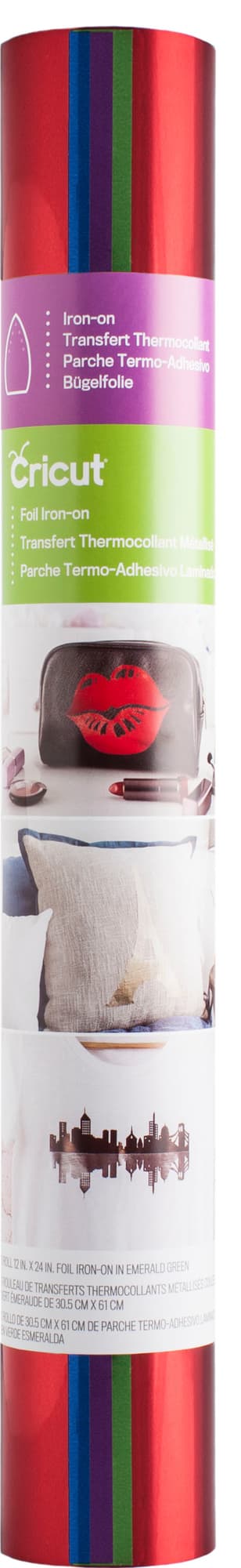 30 x 30 cm Cricut Foil Iron-On -arkkien avulla voit päivittää vaatteita, laukkuja tai sisustuselementtejä säihkyvillä yksityiskohdilla. Arkkejavoidaan käyttää myös mielenkiintoisten logojen tekemiseen tai mihin tahansa muuhun haluamaasi. Cricut Foil Iron-On -materiaalia voidaan käyttää minkä tahansa Cricut-leikkuukoneen sekä Cricut EasyPress -laitteen kanssa, mutta voit myös leikata muotoja käsin ja kiinnittää ne kankaisiin tavallisella silitysraudalla. Tämä kokeilupakkaus sisältää neljä eriväristä arkkia (punainen, kuninkaansininen, violetti ja smaragdinvihreä).