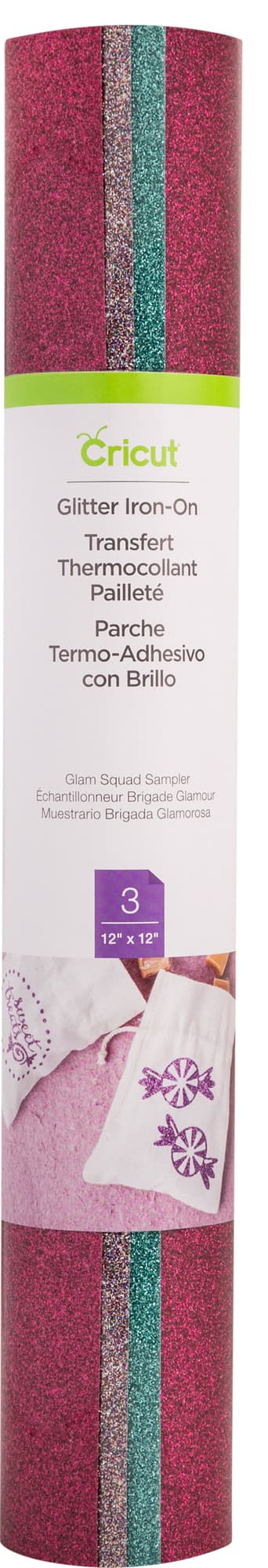 • Cricut Glitter Iron On arkit 30 x 30 cm (Glam Squad kokeilupakkaus)
