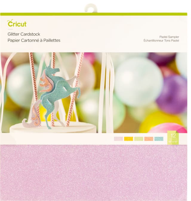Tämä 30 x 30 cm Cricut Glitter kartonkipaperipakkaus on näytepakkaus, joka sisältää 10 arkkia kimaltelevaa kartonkipaperia. Tämä on tukevampaa paperia, joka sopii erinomaisesti harrasteprojekteihin, kuten erilaisiin onnittelukortteihin, bannereihin ja muihin askartelutöihin. Sitä on helppo käyttää kaikilla Cricut-koneilla.