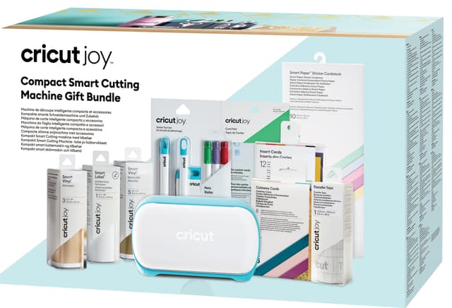 Cricut Joy -lahjapakkaus sopii erinomaisesti kaikille, jotka haluavat aloittaa askartelun. Sen keskiössä on Cricut Joy -kone. Voit liittää koneen sovelluksiin Bluetooth-yhteyden kautta ja käyttää puhelinta tai kannettavaa tietokonetta valmiiden mallien leikkaamiseen paperiin, tarroihin ja vinyyliin. Voit myös vaihtaa leikkuutyökalun kyniin, jolloin voit helposti siirtää omia piirroksia ja kirjaimia paperille, korteille ja muuhun.