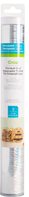 Valmistaudu hämmästymään moniväristen Cricut Premium Permanent Vinyl -hologrammiarkkien ominaisuuksista. Arkki pysyy tasaisena leikkuumatolla, mikä tekee suunnittelutyöstä helppoa. Leikkaa, irrota ja kiinnitä. Arkit ovat vedenpitäviä. Myyntipakkaukseen sisältyy kolme moniväristä arkkia, joiden koko on 30,5 cm x 61 cm. Väreinä hopea, metalli ja kulta. Suositellaan käytettäväksi sisätiloissa ja voidaan käyttää kaikkien Cricut-leikkureiden kanssa.