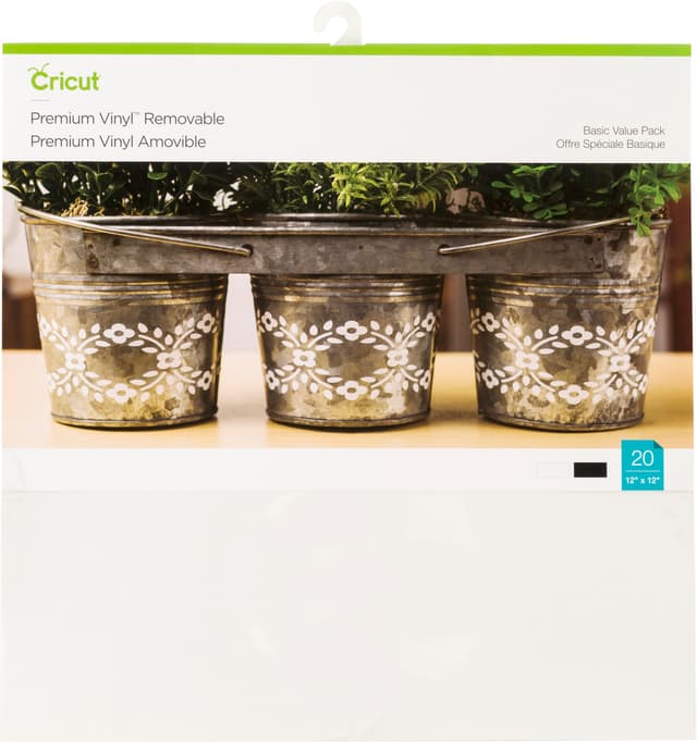 Voit liittää Cricut Premium Removable Vinyl -arkin melkein mille tahansa pinnalle ja myös poistaa sen huoletta. Tämä kätevä tuote on poistettavissa helposti ilman jäämiä kahden vuoden sisällä kiinnityksestä. Vinyyli pysyy tasaisena leikkuumatolla, mikä tekee kuvioiden työstämisestä ja liittämisestä helppoa. Myyntipakkaukseen kuuluu 20 irrotettavaa viinyliarkkia (10 kpl musta ja 10 kpl valkoinen). Voidaan käyttää kaikkien Cricut-leikkureiden kanssa.