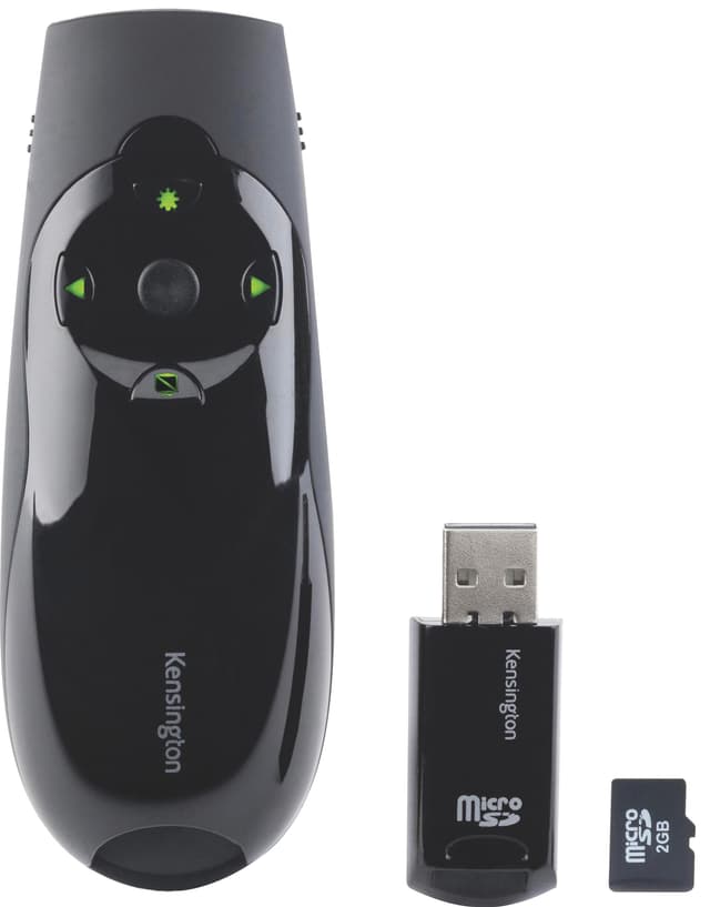 KensingtonExpertWirelessCursor-esitysohjaimenavullasaattäydenhallinnanesitelmistäsi.USB-vastaanottimenmuistikorttipaikan sekämukanatulevan8GBMicroSD-muistikortinansiostasaatesityksesikätevästimukaan.Neljävalintanäppäintä,vihreälaserosoitinja2,4GHzlangatonyhteystekevätsiitävälttämättömänesitystenhallintatyökalun.Vihreälaserosoitinon10kertaakirkkaampikuinperinteisetpunaisetlaserit.EsitysohjaimenmukanatuleekaksiAAAparistoa.LangattomanUSB-vastaanottimenvoisäilyttääohjaimensisällä,jottaseeihuku.SeonyhteensopivaWindowsjaMacOS–käyttöjärjestelmienkanssa.