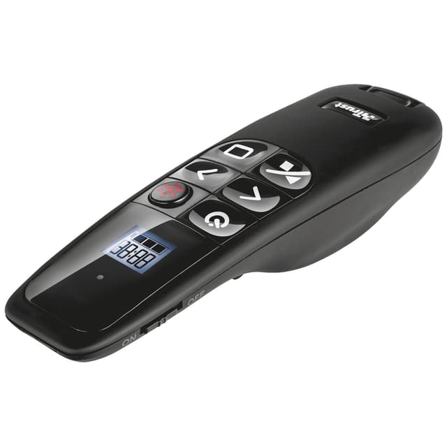 Langaton Trust Elcee -osoitin tekee esityksestäsi ammattimaisen. Osoittimessa on 6 PowerPoint- ja kuvaesitystoimintoa, joiden avulla hallitset esityksen kuin esityksen. LCD-näytön ansiosta voit seurata ajankäyttöäsi ja akun latauksen tilaa. 20 metrin kantama mahdollista yleisön joukossa liikkumisen esityksen aikana.