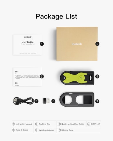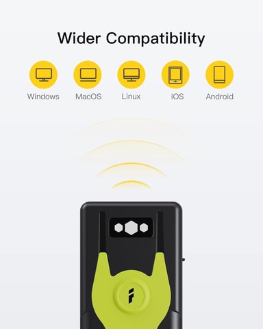 Tämä Bluetooth 2D Viivakoodinlukija 2,4 GHz USB-adapterilla on kehittynyt langaton lukija, joka lukee nopeasti ja luotettavasti sekä 1D- että 2D-viivakoodeja suoraan paperilta tai näytöltä. Kolmen liitäntätavan, eksklusiivisten pikapainikkeiden ja pitkän akun keston ansiosta se sopii erinomaisesti varastoihin, POS-järjestelmiin, toimistoihin ja mobiilikäyttöön.