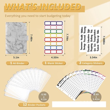 Kattava budjetointityökalu: Hallitse talouttasi 12 värikkäällä budjettiarkilla, 12 vetoketjullisella käteiskirjekuorella, 24 luokkatarralla ja kahdella englanninkielisellä sanatarralla. Tämä täydellinen sarja sisältää kaiken, mitä tarvitset kulujen seuraamiseen, varojen jakamiseen ja taloudellisten tavoitteidesi saavuttamiseen.