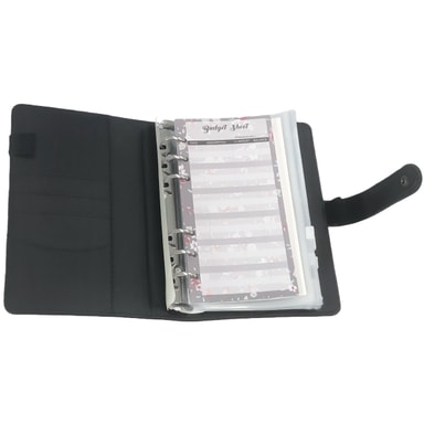 • A6 rengaskansio, jossa budjettisuunnittelija Musta