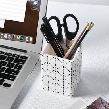 Tyylikäs ja toimiva: Tämä kynäteline yhdistää modernin ruudullisen muotoilun käytännöllisyyteen ja lisää ripauksen hienostuneisuutta työtilaan samalla kun se pitää kirjoitustarvikkeet järjestyksessä.