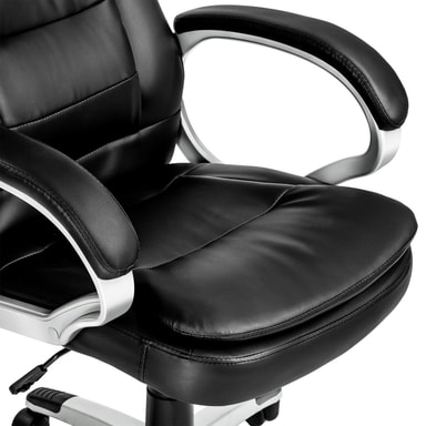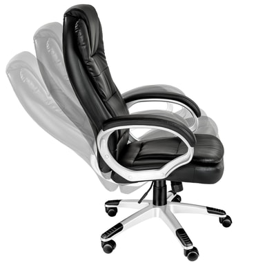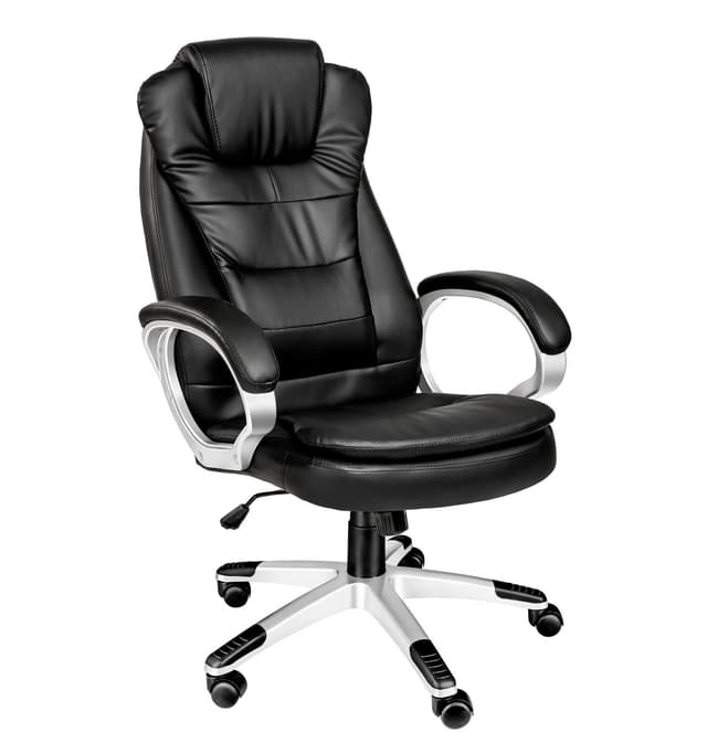 Tässä tectaken toimistotuolissa on erittäin paksu pehmuste (jopa 12 cm) pehmeää ja mukavaa istumista varten! Tuolien istuin- ja käsinojanpäälliset on valmistettu mustasta synteettisestä nahasta. Toimistotuoli tarjoaa korkean istumismukavuuden ergonomisesti muotoillun istuimen ja selkänojan sekä vahvistetun ja pehmustetun niskan niskatuen ansiosta. Saumattoman korkeussäädön ansiosta toimistotuoli on myös täydellisesti säädettävissä vartalosi koon ja työpöydän pinnan mukaan. Tuolin turvatähden muotoinen jalusta tarjoaa suuren vakauden 5 tuplapyörän varassa. Toimistotuolissa on saumattomasti säädettävä kallistusmekanismi, joka voidaan säätää kehon painon mukaan. Kääntyvä tuoli sopii täydellisesti käytettäväksi kotona tai toimistossa, ja se sopii saumattomasti muiden kalusteiden rinnalle. Tuo lisämukavuutta työpaikallesi tällä tectaken kaksoispehmustetulla toimistotuolilla.