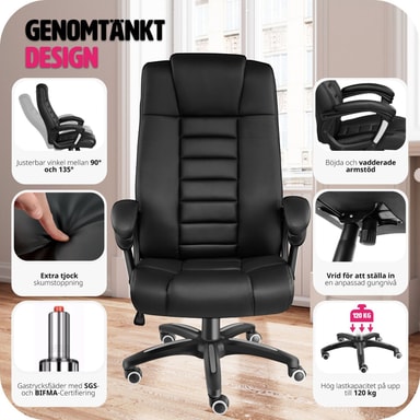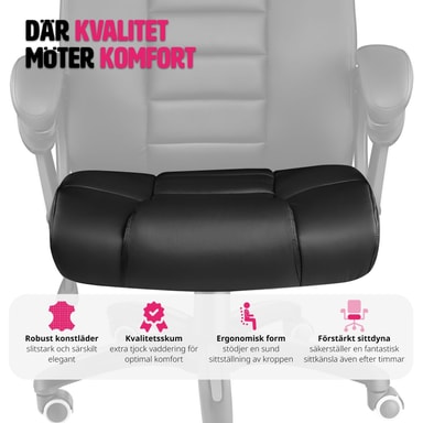 Tämä tectaken toimistotuoli sopii saumattomasti jo olemassa olevien kalusteiden rinnalle ja luo mukavan työympäristön. Kääntyvässä tuolissa on erittäin paksu pehmuste (jopa 12 cm) pehmeää ja mukavaa istumista varten. Tämän tuolin pehmusteiden korkea laatu ja tiheys takaavat pitkän käyttöiän. Tuolin ergonomisesti muotoillun istuin- ja selkänojan sekä vahvistetun ja pehmustetun niskatuen ansiosta saavutetaan optimaalinen istumamukavuus. Toimistotuolissa on saumaton korkeudensäätö, mikä tarkoittaa, että se voidaan säätää täydellisesti vartalosi koon ja työpöydän pinnan mukaan. Tuolin turvallisuustähden muotoinen jalusta tarjoaa suuren vakauden 5 kaksoispyörän varassa. Toimistotuolissa on saumattomasti säädettävä kallistusmekanismi, joka voidaan säätää kehon painon mukaan. Olipa kyseessä kotitoimisto, työpaikka tai pelihuone, tämä tectaken ylellinen toimistotuoli tarjoaa sinulle mukavan paikan tehtävien suorittamiseen.