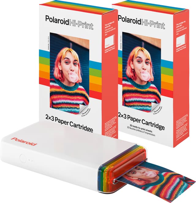 Tämä Hi-Print-pakkaus sisältää taskukokoisen Hi-Print-tulostimen ja kaksi 20 arkin valokuvapaperipakettia (40 arkkia), jotta voit aloittaa muistojesi tulostamisen saman tien ja säilyttää ne fyysisessä muodossa. Hi-Print-tulostin lämpötiivistää kuvasi vedenkestävään päällysteeseen sekä liimapintaiseen takaosaan, jonka ansiosta voit laittaa kuvasi näkyville mihin tahansa. iOS- ja Android- tuettu Polaroid Hi-Print -sovellus antaa käyttäjälle vapauden valita erilaisia suotimia, kehyksiä, tarroja ja kuvanmuokkaustyökaluja, joiden avulla voit ehostaa kuviasi.