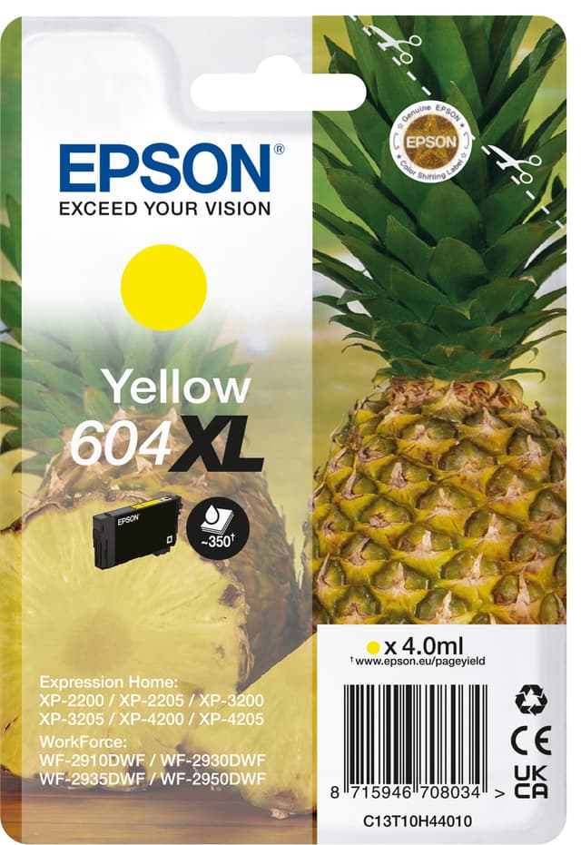 Luotettavien tulosten takaamiseksi voit täydentää EPSON-tulostimesi Epson 604 XL -mustekasetilla. Se on XL-kokoinen mustekasetti keltaiselle värille.Tutustu ominaisuuksiin