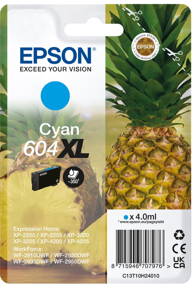 Luotettavien tulosten takaamiseksi voit täydentää EPSON-tulostimesi Epson 604 -mustekasetilla. Se on XL-kokoinen mustekasetti syaanin värille.