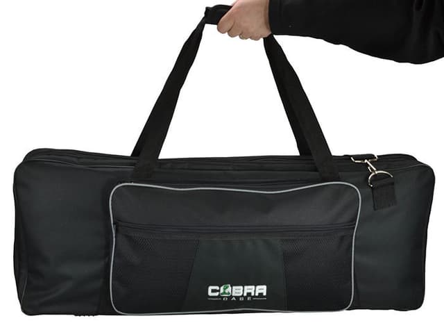 A high quality cobra 76 key keyboard bag made from strong material with extra thick 10mm padding for extra safety. Built with a robust carry handle & adjustable shoulder strap. Nylon beading and rubber feet have been used for extra stability. Two zip pockets provide plenty of space for accessories such as sheet mucis, books and cables. The perfect bag for schools, bands & orchestras. (please note: colours of bag may vary)