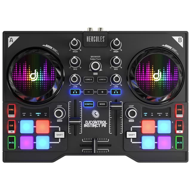 Hercules Instinct P8 DJ-kontrolleri on monipuolinen laite, joka sopii myös aloittelijoille. Kompaktissa ja tehokkaassa kontrollerissa on useita ominaisuuksia, jotka tekevät siitä intuitiivisen ja helppokäyttöisen. Kaksidekkinen kontrolleri on yhteensopiva PC:n ja Macin kanssa, ja voit yhdistää siihen kaiuttimet tai kuulokkeet.