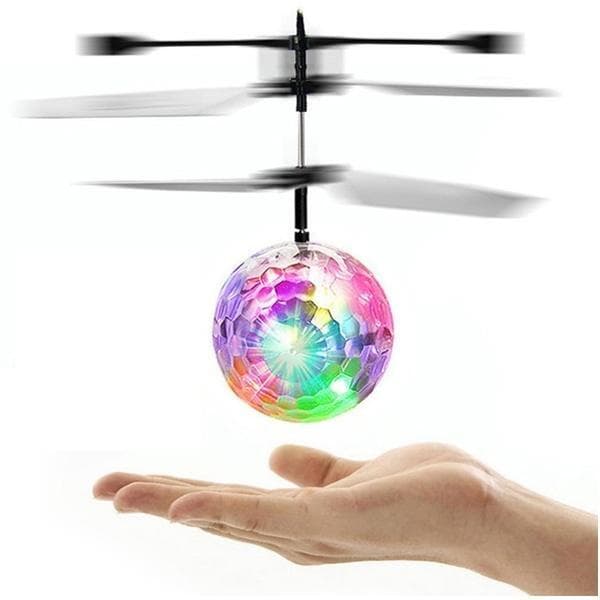 Hauska itsestään lentävä drone, joka on muotoiltu diskopallona! Dronessa on anturi alapuolella, joka havaitsee, kun se lähestyy lattiaa tai kun joku varovasti asettaa kätensä dronen alle, jolloin se leijuu ylös uudelleen! Dronella on noin 6-8 minuutin lentoaika ennen kuin se on ladattava.