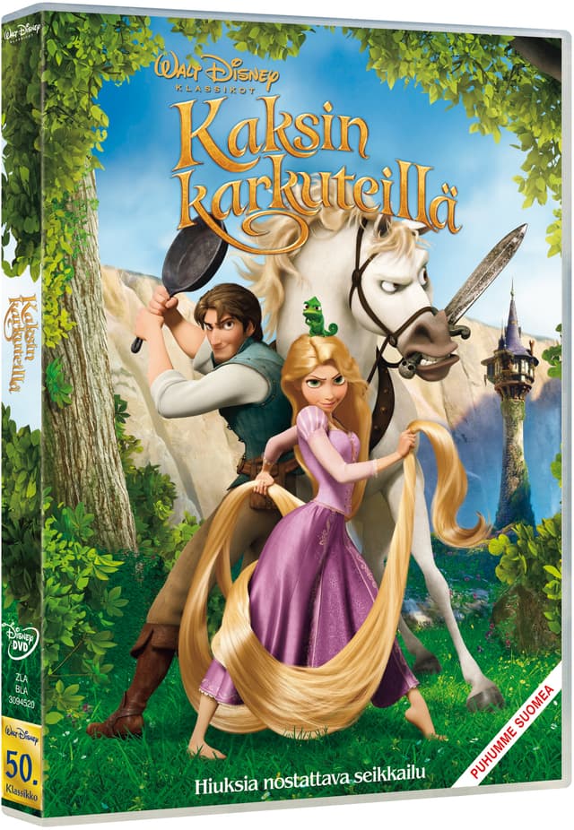 Kaksin karkuteillä (alkuperäisnimi Tangled) on huumorilla kuorrutettu koko perheen seikkailu. Valtakunnan etsityin ja hurmaavin roisto Flynn Rider (ääni Lauri Tähkäi) etsii piilopaikkaa salaisesta tornista, syvältä metsän siimeksestä, mutta päätyykin temperamenttisen teinitytön, Tähkäpään (ääni Maria Ylipää) vangiksi. Lumotuilla, valtavan pitkillä kullankeltaisilla hiuksilla siunattu Tähkäpää on jo jonkin aikaa etsinyt ulospääsyä tornista, jossa on joutunut viettämään vankina koko elämänsä, ja niin hän päätyy solmimaan molempia hyödyttävän sopimuksen komean varkaan kanssa. Pian omaperäinen kaksikko löytääkin itsensä kietoutuneena toiminnantäyteiselle pakomatkalle, jota täydentävät supervainulla varustettu hevonen, hassu kameleontti ja mellastava joukko baariöykkäreitä. Puhumme suomea.