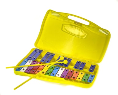 Värikäs lasten kellopeli muovisessa säilytyslaatikossa Kromaattinen kellopeli 25 säveltä Sisältää kaksi...Tutustu ominaisuuksiin