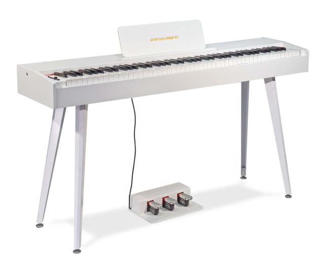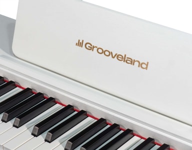 Valkoinen Grooveland DDP-140 -sähköpiano yhdistää kauniin muotoilun, edistyneet ominaisuudet ja autenttisen soittokokemuksen – täydellinen valinta kaikille, jotka etsivät korkealaatuista digitaalipianoa edulliseen hintaan.