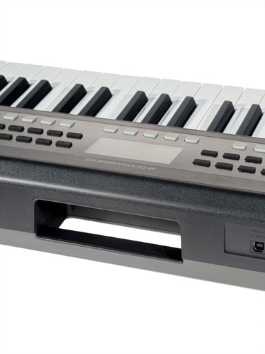 Koskettimistossa on selkeä LCD-näyttö, ja käteviin liitäntöihin kuuluvat USB-B-liitäntä isännöintiin, sustain-pedaali, kuulokeulostulo ja virtalähde. Kaapissa integroitu älykäs kantokahva tekee soittimesta helpon kuljettaa. Lisäksi koskettimisto toimii kuudella AA-paristolla (eivät sisälly toimitukseen), joten voit soittaa missä tahansa.