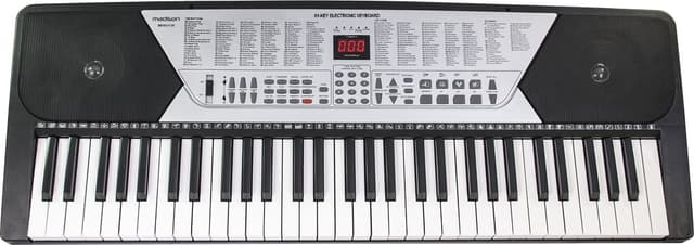100 sounds & 100 built-in rhythms incl. Drum and animal sounds. 8 demo songs. output to headphones or speaker.power supply incl. Run on batteries - not included.