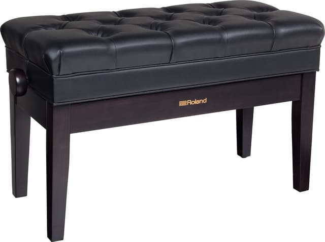 Roland RPB-D500 Kaksoispianopenkki Uskomattoman tyylikäs ja mukava pianopenkki Roland. Korkeus säädettävissä 48-58 cm. Vinyylinen istuin Säilytyslokero istuimen alla. Ihanan pehmustettu istuin, johon mahtuu kaksi henkilöä. Koko: 76cm x 33cm x 48-58cm. Saatavana myös black
