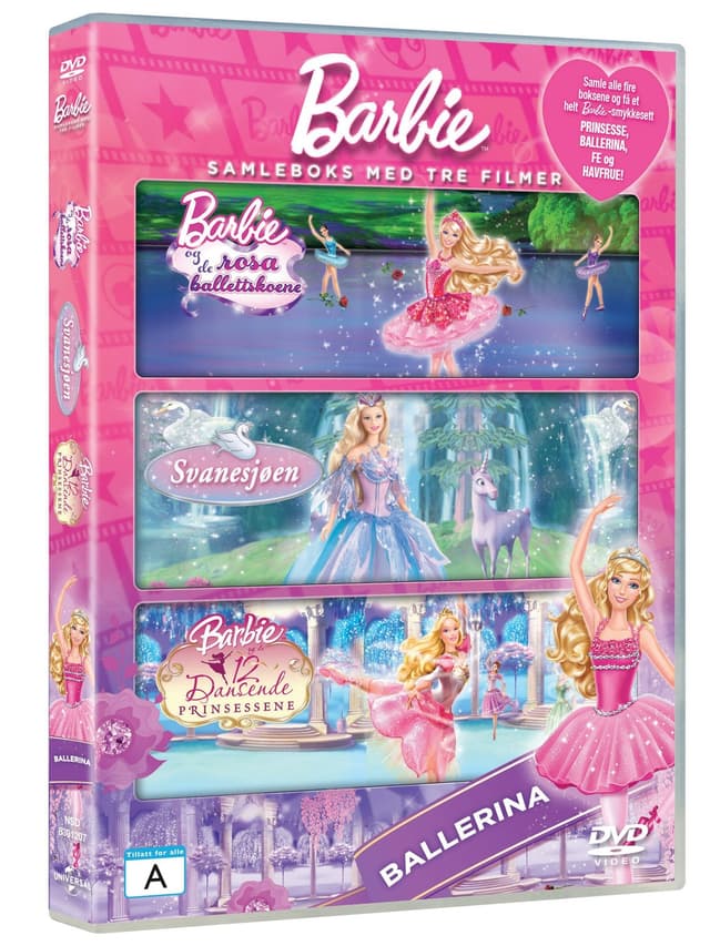 Barbie ja taikatossut: Koettaessaan jalkaansa säihkyviä vaaleanpunaisia balettitossuja Kristyn ja hänen paras ystävänsä Hailey tempautuvat sadunomaiseen balettimaailmaan. Barbie ja joutsenlampi: Elokuva perustuu Tsaikovskin upeaan musiikkiin ja rakastettuun satuun. Elokuvassa Barbie on Odetten roolissa nuoren leipurin tyttärenä, joka seuraa yksisarvista lumottuun metsään. Metsässä paha noita muuntaa hänet joutseneksi tarkoituksenaan voittaa serkkunsa Keijukaiskuningatar ja saada metsä haltuunsa.