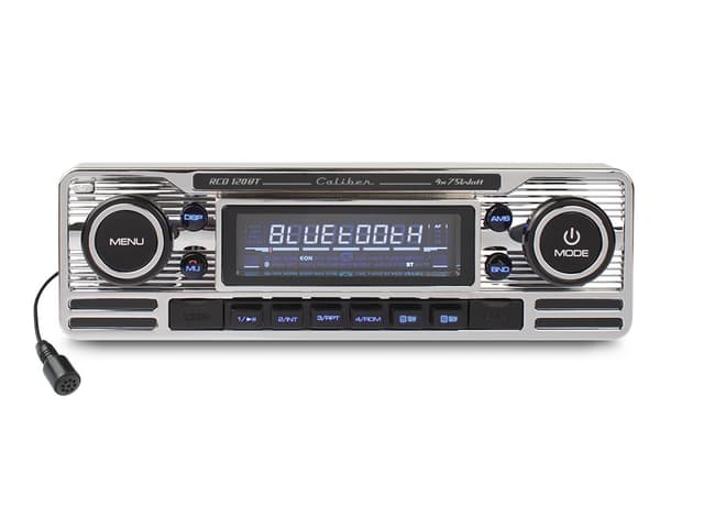 Retro autoradio nykyaikaisella tekniikalla. Bluetooth langattomaan puhelinyhteyteen ja musiikin suoratoistoon ( Mikrofoni mukana ). FM-viritin CD-soitin SD-kortti, USB ja Aux-in 4 x 75 wattivahvistin (huippu)Tutustu ominaisuuksiin