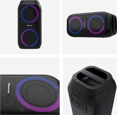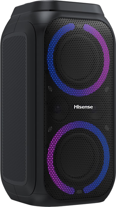 Hisense Party Rocket 160 -bilekaiutin tuo energiaa kaikkialle. 160 W ääniteho, dynaaminen valaistus ja 12 h soittoaika tekevät tästä kannettavasta Bluetooth-kaiuttimesta täydellisen kotibileisiin ja karaoke-hetkiin.Tutustu ominaisuuksiin