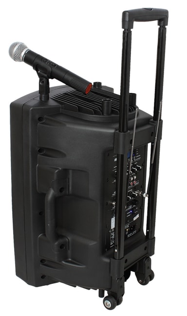 Kannettava kaiutin12"" bassoelementillä. Sisäänrakennettu ladattava akku. Helppo kuljettaa pyörien avulla. Mukana kaukosäädin. Sisältää 2 langatonta UHF mikrofonia. Voit toistaa musiikkia monella tavalla, ...Tutustu ominaisuuksiin