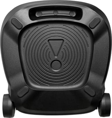 Juhlatunnelman voi nyt helposti siirtää ulkoilmaan – leveämmät pyörät rullaavat pehmeästi epätasaisella maalla ja kiinteästä kantokahvasta kaiuttimen saa napattua helposti mukaan.