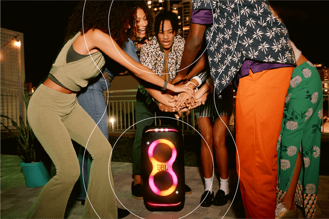 JBL PartyBox Stage 320 tuottaa voimakkaan JBL Pro Sound -äänen ja jykevän basson, jotka saavat yleisön liikkeelle. Mukautuva valoesitys synkronoituu musiikin rytmiin ja kaiutin tarjoaa jopa 18 tunnin soittoajan. Tukevan teleskooppikahvan ja leveiden pyörien ansiosta voit kuljettaa kaiuttimen melkein mihin tahansa.