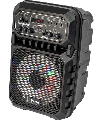 Paristoilla toimiva party-äänijärjestelmäValmis käytettäväksiSisäänrakennetut LED-valoefektitUSB, Bluetooth ja SD-soitinAUX/MP3-tulo ja äänitystoimintoTutustu ominaisuuksiin