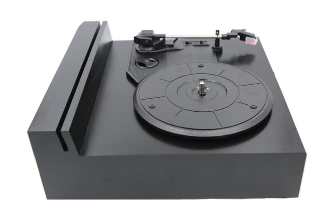 Kaksi sisäänrakennettua kaiutinta: Vinyylisoittimessa ei ole vain yksi, vaan kaksi sisäänrakennettua kaiutinta, joten saat kaksinkertaisen hyvän äänen. Jos et usko, että se riittää, on sekä RCA- että AUX-liitännät, jotta voit liittää oman kaiuttimen.