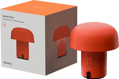 Kannettava Kooduu Sensa Play Mini Sound by JBL -kaiutin täyttää tilan upealla äänellä ja kauniilla valolla. Siinä on SOUND by JBL -äänentoisto, himmennettävä LED-valo, IP53-luokitus ja jopa 8 tunnin akkukesto kauniissa sienenmuotoisessa rungossa.Tutustu ominaisuuksiin