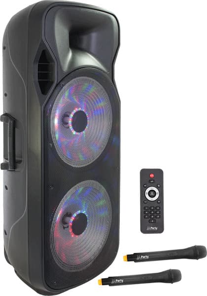 Stand-alone, paristokäyttöinen äänijärjestelmä, jossa on sisäänrakennetut LED-valotehosteet kaiuttimissa. Ihanteellinen kaikissa tilanteissa, joissa tarvitaan täysin varusteltu, käyttövalmis äänentoistojärjestelmä (muusikot tien päällä, karaoke, baarit, kuntokurssit, opetus, puhe, koulutus jne.).