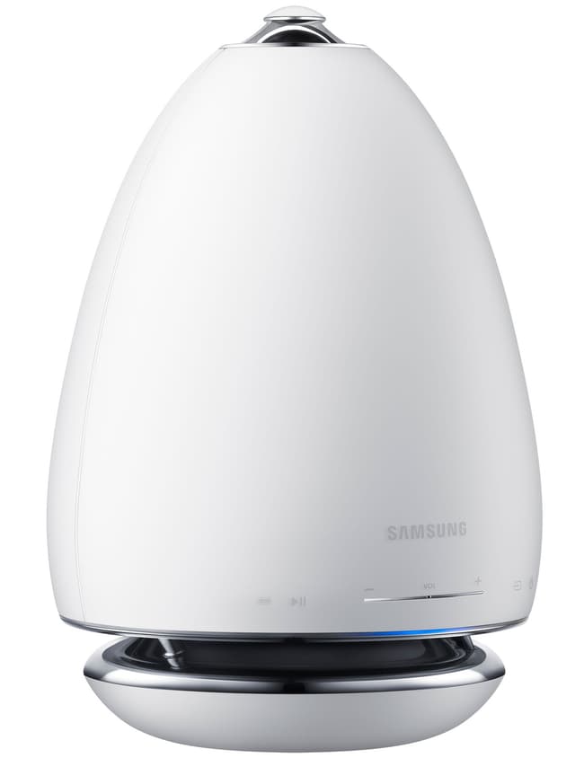 Anna Samsung WAM6501XE multiroom-kaiuttimen täyttää huone äänellä. Valkoinen langaton kaiutin sulautuu vaivatta kodin sisustukseen.
