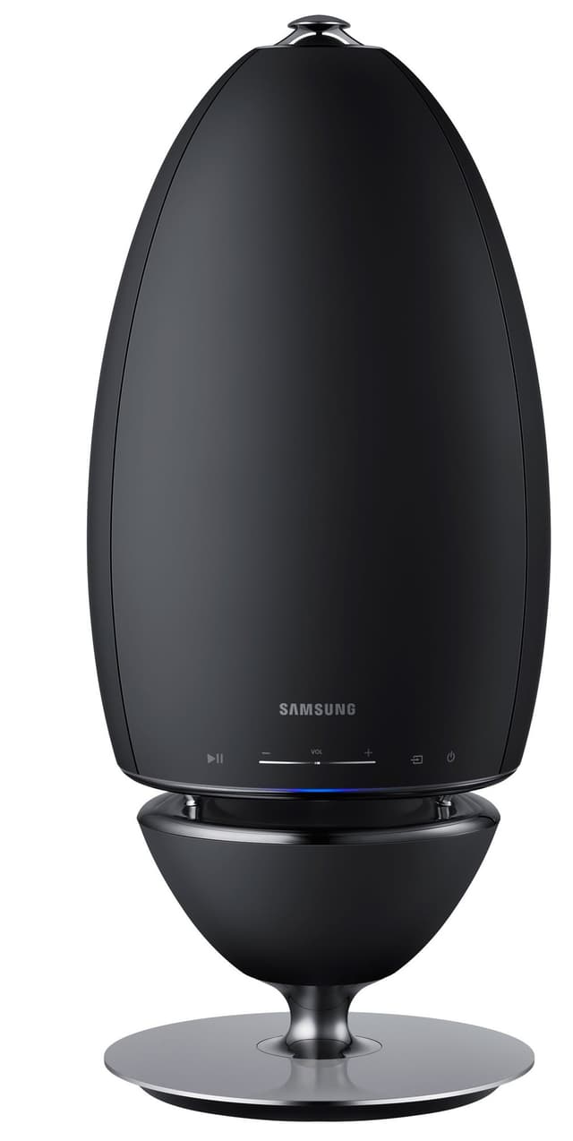 Anna Samsung WAM6501XE multiroom-kaiuttimen täyttää huone äänellä. Musta langaton kaiutin sulautuu vaivatta kodin sisustukseen.
