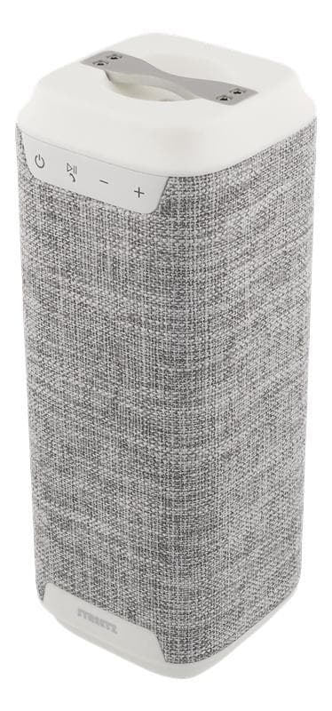 STREETZ vesitiivis Bluetooth-kaiutin, ladataan langattomasti, IPX7, Bluetooth 4.1, kangasverhoilu, valkoinen/harmaa