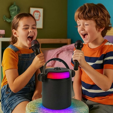 PartyZone-karaokesetti kahdella mikrofonilla (musta) on ihanteellinen valinta juhliin, perhetapaamisiin ja viihtyisiin iltoihin, joissa musiikki on keskipisteenä. Tehokkaan kaiuttimen, kahden mikrofonin ja modernin langattoman tekniikan ansiosta saat täydellisen karaoke-kokemuksen yhdessä kompaktissa ja tyylikkäässä laitteessa.